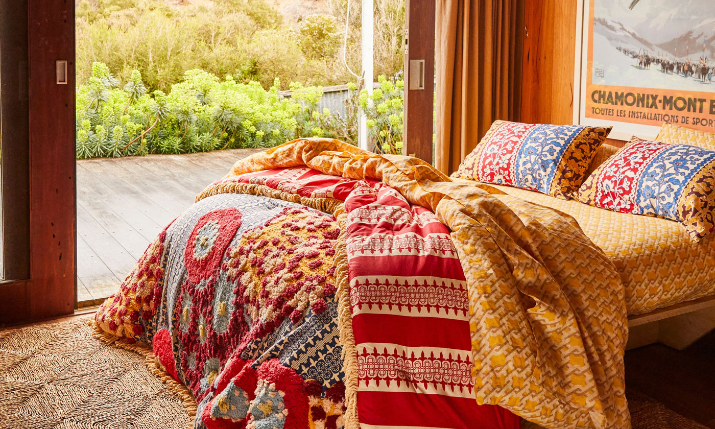 A vibrant twist on classic florals, Delphine bursts to life in joyful reds and yellows over grounding green. Crafted for playful spirits and bright, happy homes.