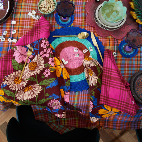 Yes—our crochet coasters are the perfect little companions to your favourite placemats, bringing that same handcrafted charm in a smaller, equally lovely form. Designed in both contrasting and complementary colours and patterns, they add a sweet, textural touch to your table while protecting surfaces in style. Pair them together for a cohesive look or mix with our linen napkins to create a layered setting full of personality. Whether it’s coffee for one or a feast with friends, these pieces make every moment feel beautifully considered.