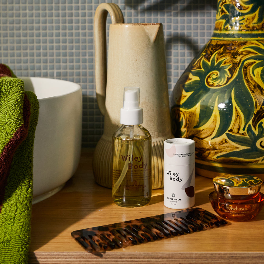 Crafted from a skin-loving botanical blend of lightweight cold-pressed oils like sunflower seed, apricot kernel, and rosehip seed, the Everywhere Oil is an ultra-nourishing treat for the whole body. This nongreasy, unscented body oil is perfect for locking in moisture after a shower, mixing with the Everything Lotion for an extra shot of hydration, and nourishing elbows, cuticles, and heels.