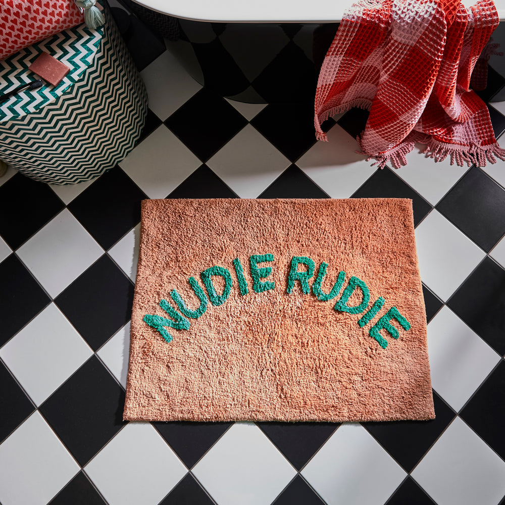 Our most popular product ever, the Tula Nudie Bath Mat brings a sense of playfulness to bathroom settings thanks to the cheeky 'Nudie Rudie' typography adorning its tufted base.