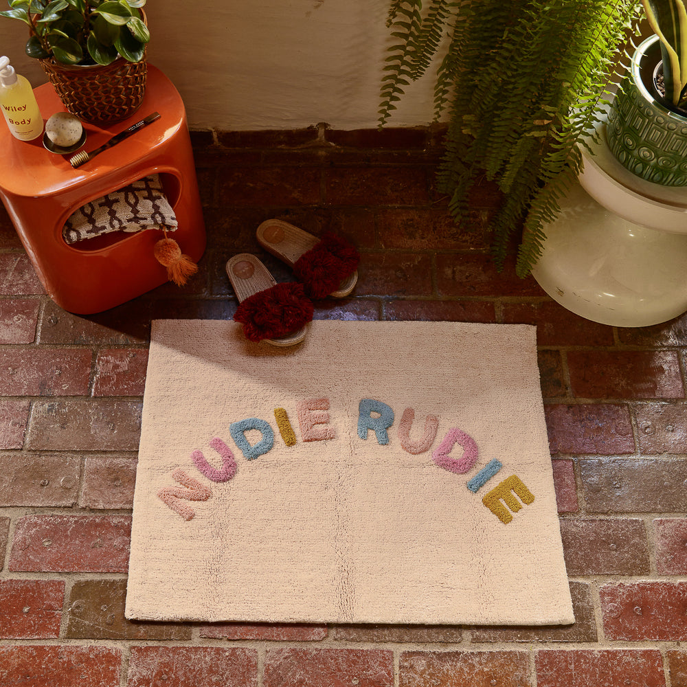 Plant your feet each morning on our incredibly plush, super absorbent, Nudie Rudie bath mat and start every day with a cheeky giggle. Hand-tufted by artisans, our Nudie Rudie bath mats are super special and iconically Sage x Clare.