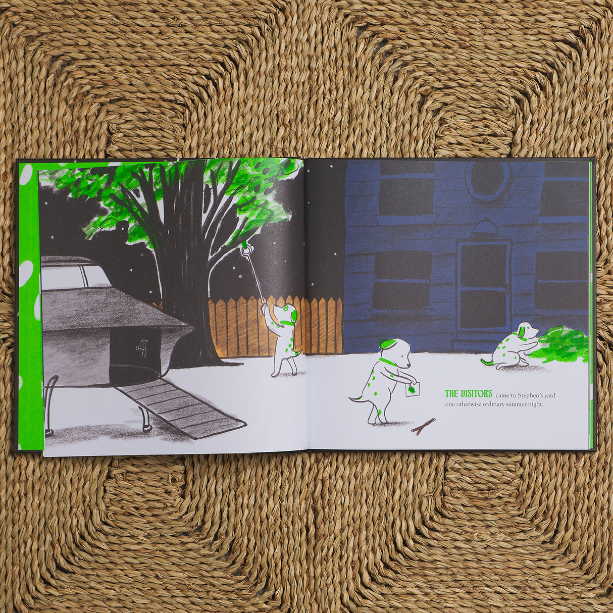 A visitor from outer space comes to Stephen’s yard one night. It may look like a Dalmatian, but it certainly doesn’t act like one. At first, Stephen and the visitor get off on the wrong paw. They quibble over kibble, debate sleeping arrangements, and must abandon earth dogs’ approach to bathroom breaks altogether to keep the peace. Is a shared love of bacon a strong enough foundation for this ordinary earth boy and extraordinary out-of-this-world canine to learn to live in harmony?