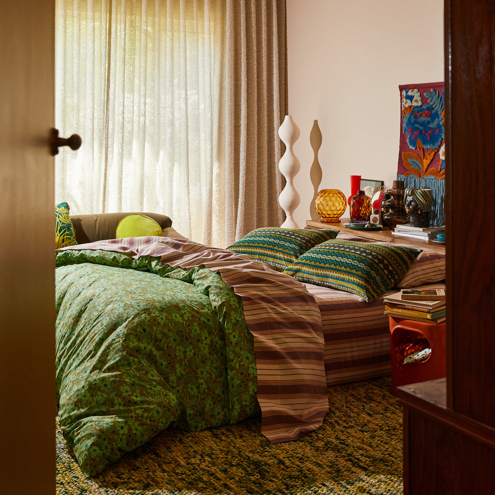 Such a bold, beautiful green. This quilt cover feels so buttery and gives my room such a fresh feeling. I turn my head every time I walk past my bedroom, just have to have one more look! My bed is so inviting and you already know i mix and match everything.. what a stunner for the warmer weather to make you feel all the feels!!