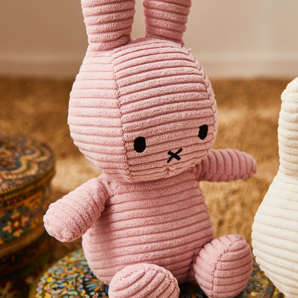 Miffy Corduroy is the perfect plush gift for new babies and children. Not to mention a beautiful addition to any interior. With her endearing and fluffy look, she is the absolute best cuddle buddy and the most eco-friendly and sustainable Miffy there is. The Miffy has a nice squishy filling which makes them perfect for even the smallest kids. To grab, cuddle and play with for the first time.