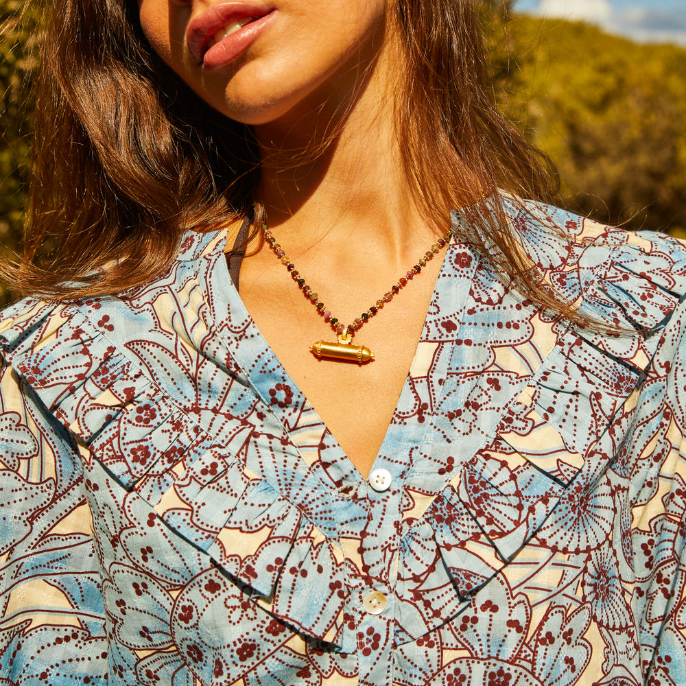 • Made from sterling silver, 22k gold plate and semi precious stones